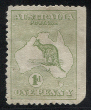 1d green (colour of the ½d value). Printed on white wove, unwatermarked paper, line perf 12½. This example is IMPERFORATE AT RIGHT. Nine examples are recorded of this colour trial.