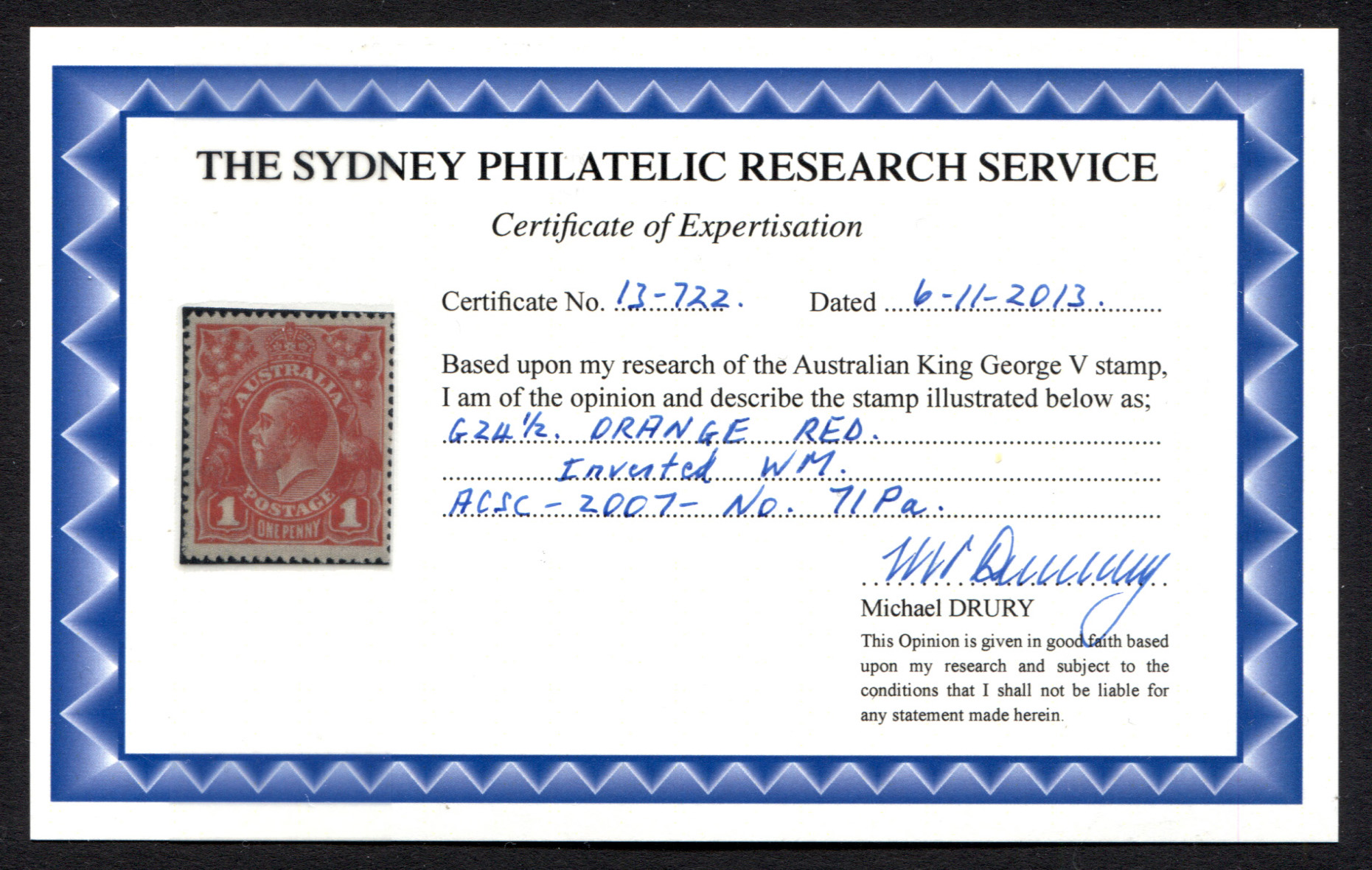 KGV Single Wmk. 2d orange, OS, WMK INVERTED. Typical centring for this issue. Very fine...