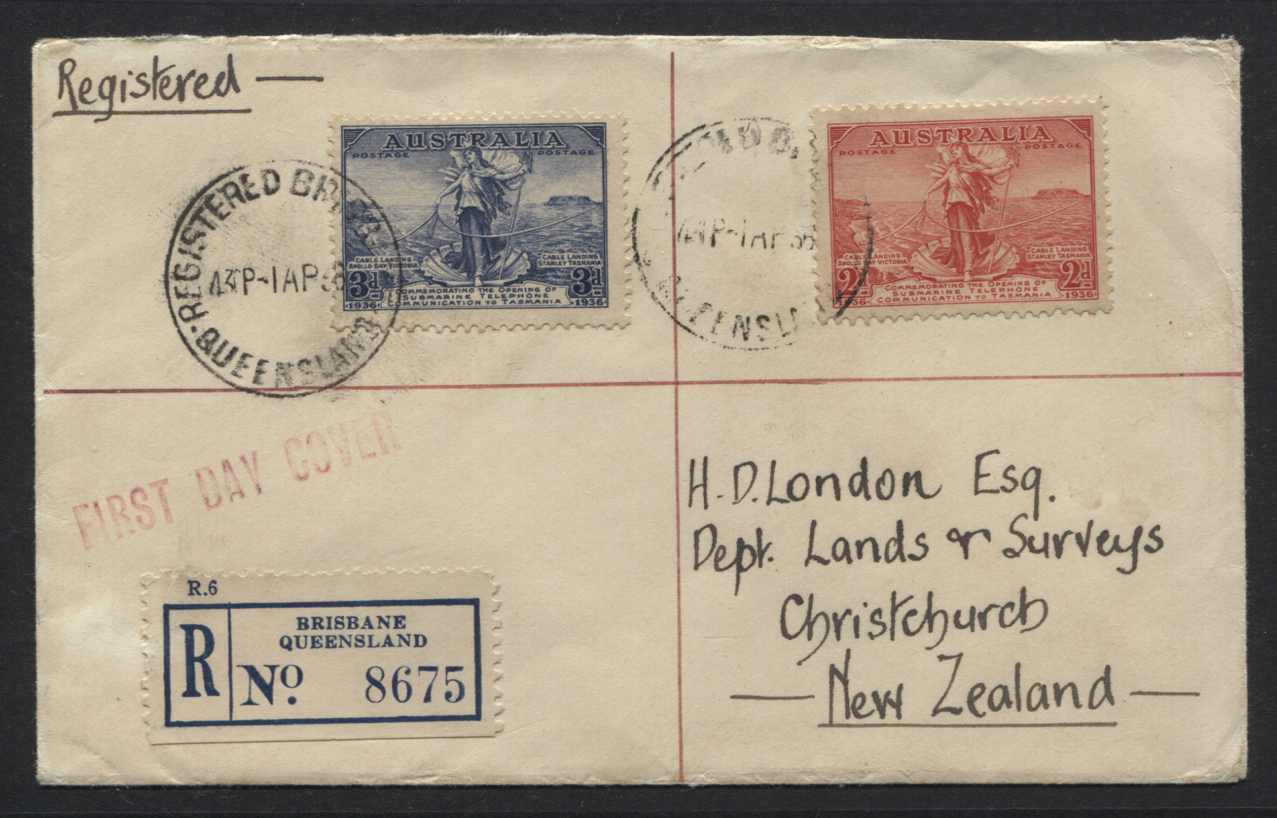 1936 Cable set of 2, dated 1 APRIL, 1936. Roughly opened at top.