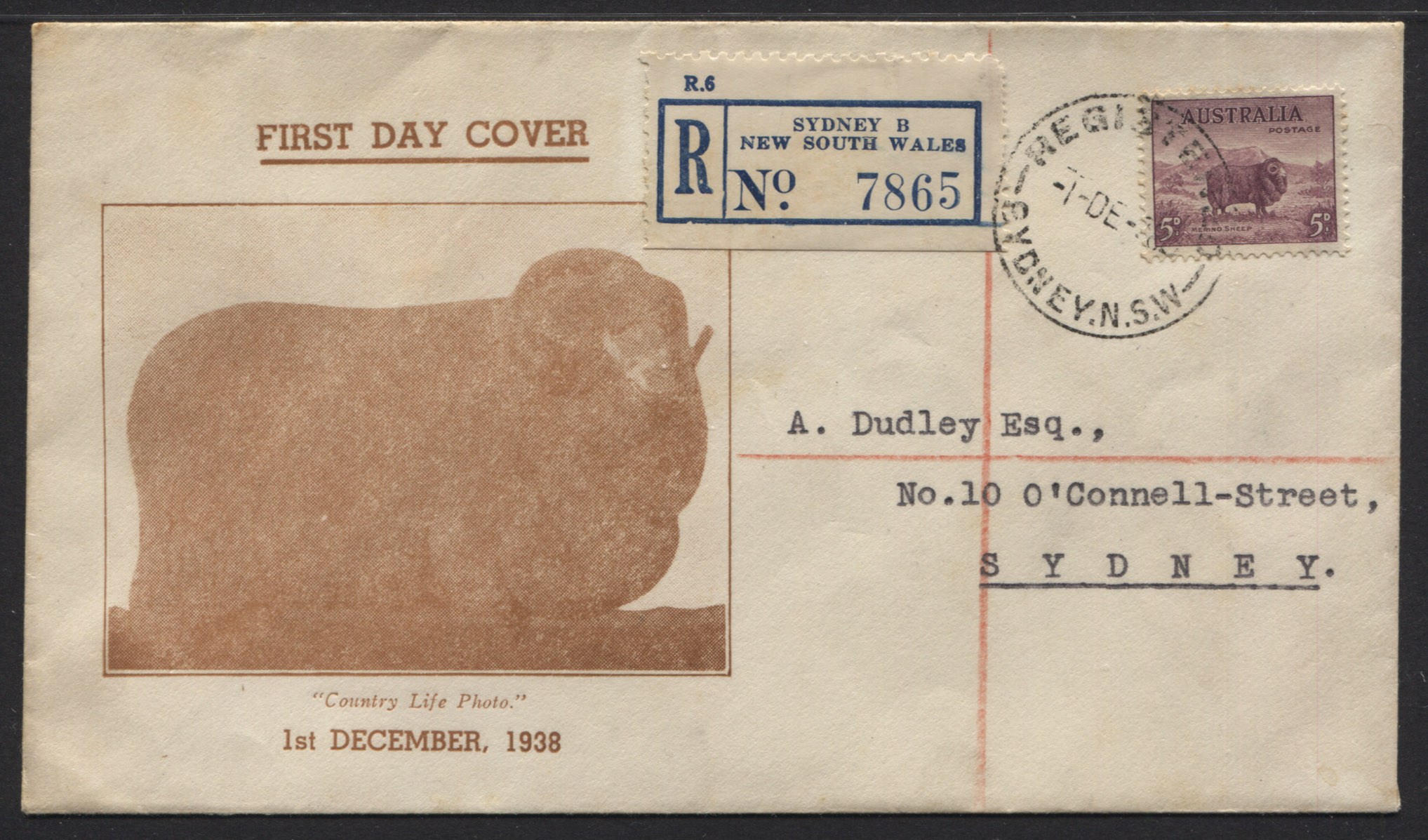 5d ram, dated 1 DECEMBER, 1938. A very fine registered cover.