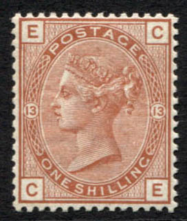 1881 Queen Victoria 1/- orange-brown (plate 13). Superb