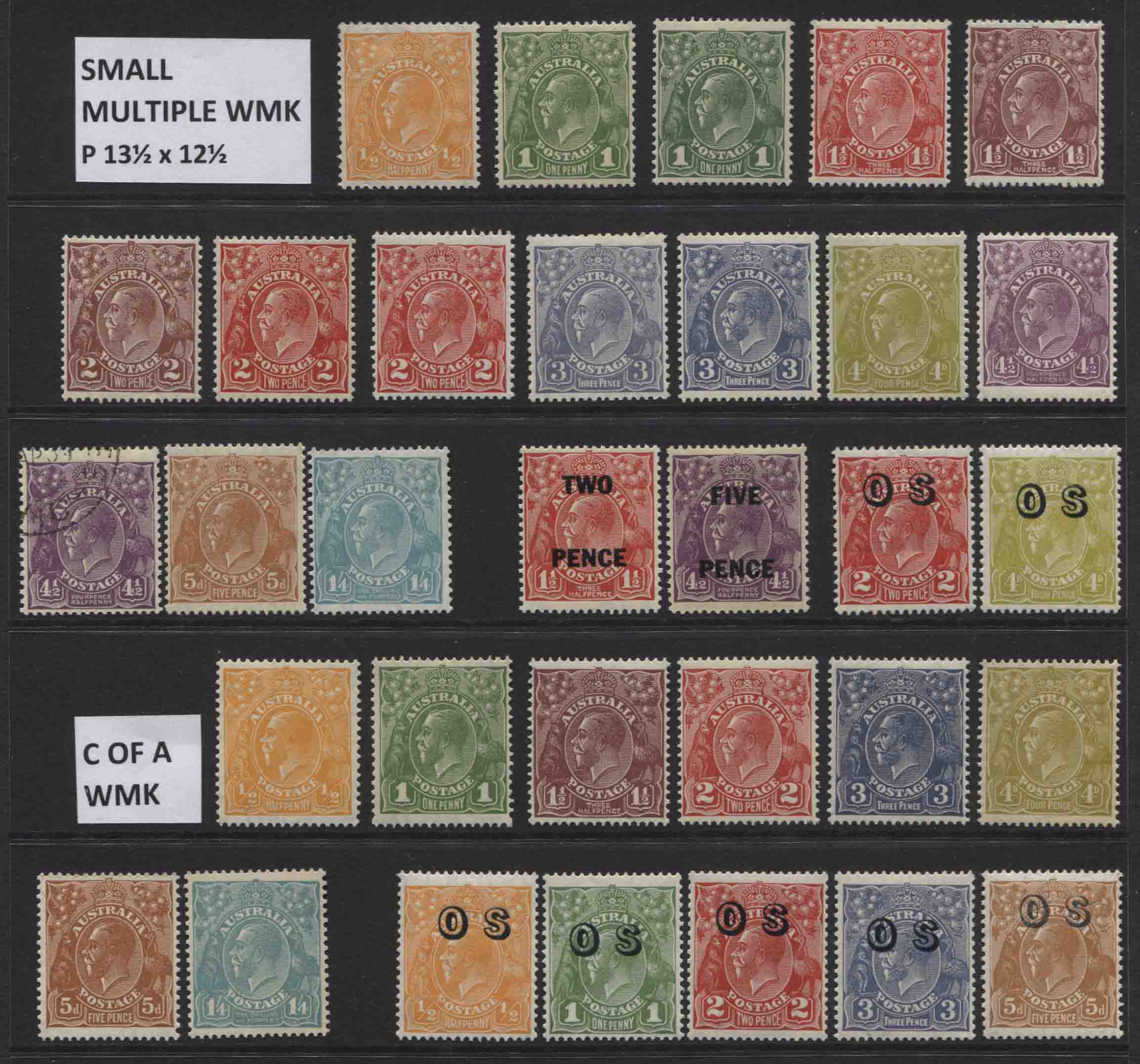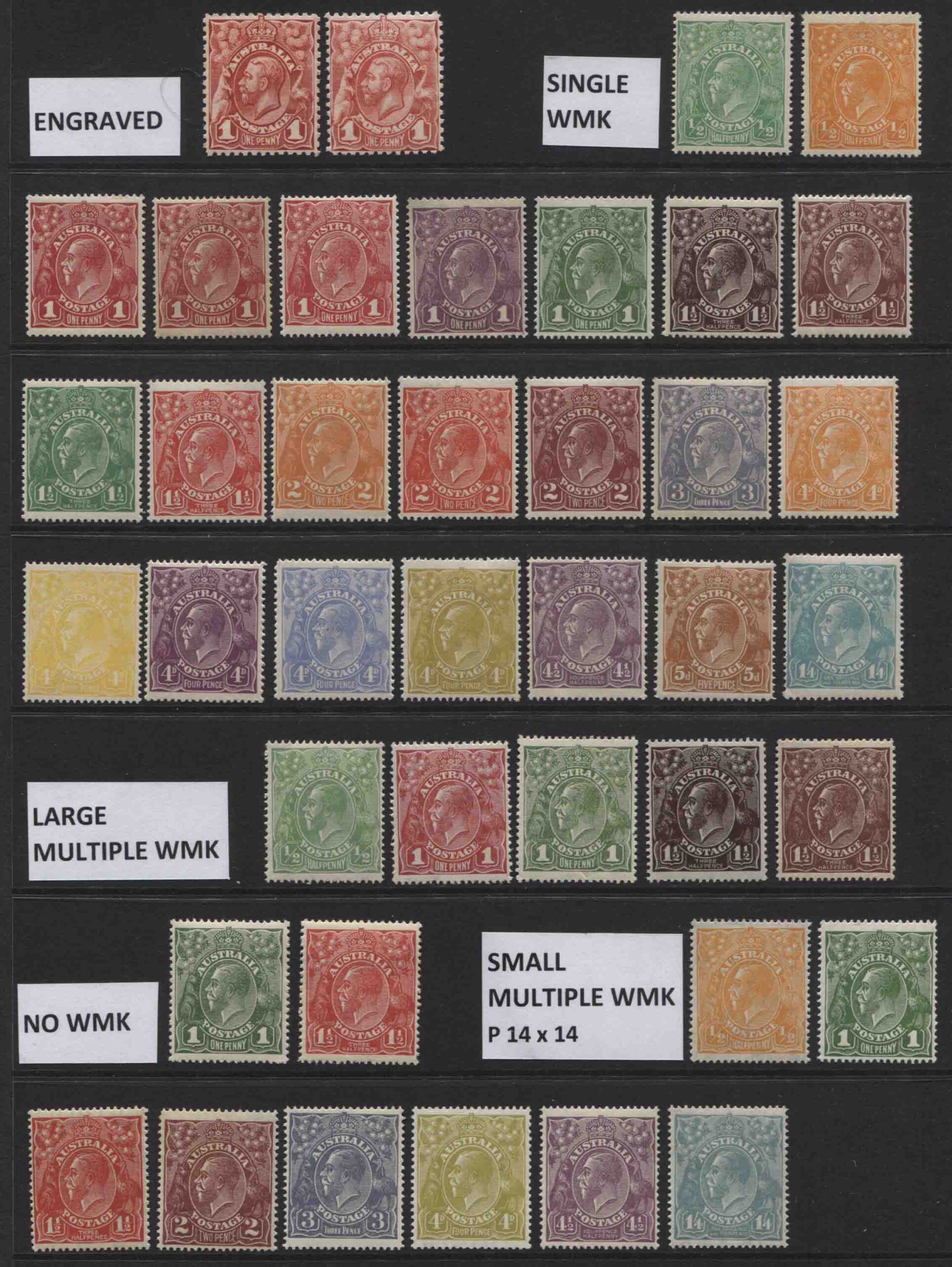 Based on the contents of the Seven Seas illustrated Australia album. Includes all watermark, die and colour variations. All issued stamps are selected mint unhinged (71 stamps), included is the 4½d violet die 2 unissued stamp, cancelled to order (71 MUH/1 CTO).