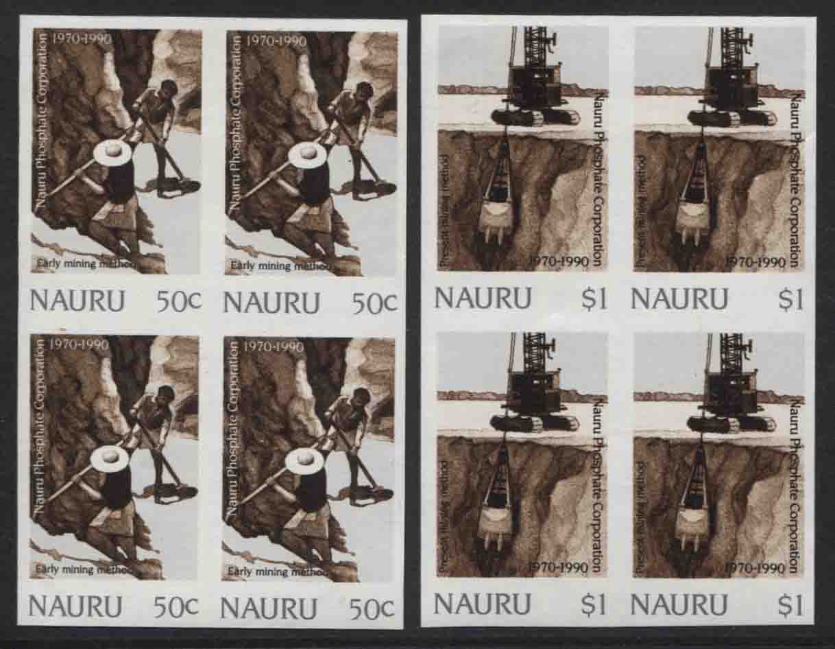 Phosphate Corporation set of 2. TOTALLY IMPERFORATE, extra fine, mint unhinged. Matching blocks of 4.