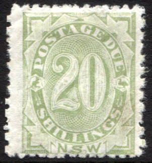 POSTAGE DUE 20/- green, perf 12 x 10. Fresh, mint hinged.
