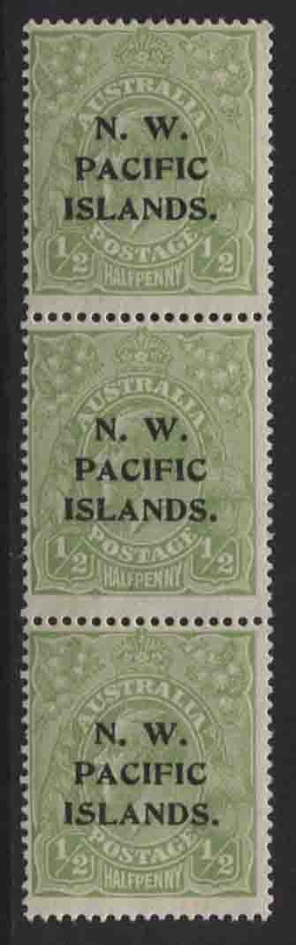 Single wmk ½d bright green. Types A, B, C, strip of 3. Very fine, 2 mint unhinged/1 mint lightly hinged.