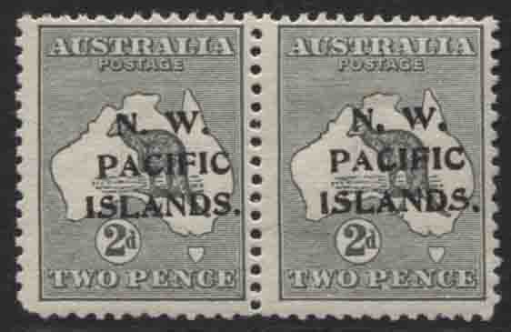 1/- deep green ABC strip, 2 stamps mint unhinged/ 1 mint hinged.
