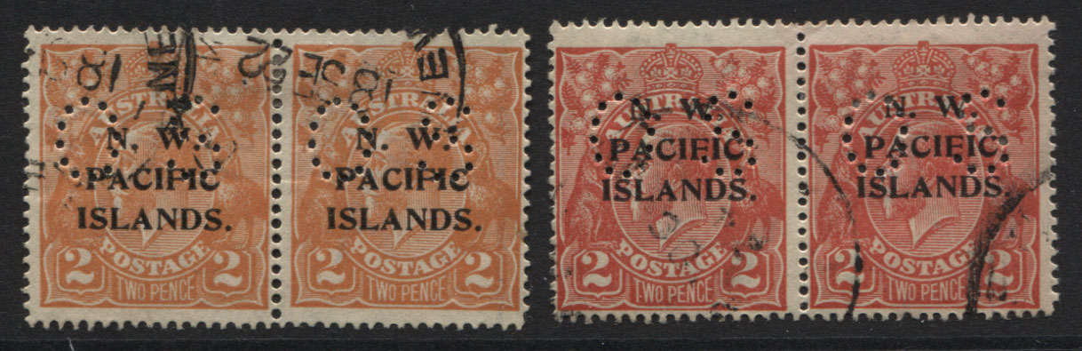 2d orange & 2d red, OS, horizontal pairs. Fine used.