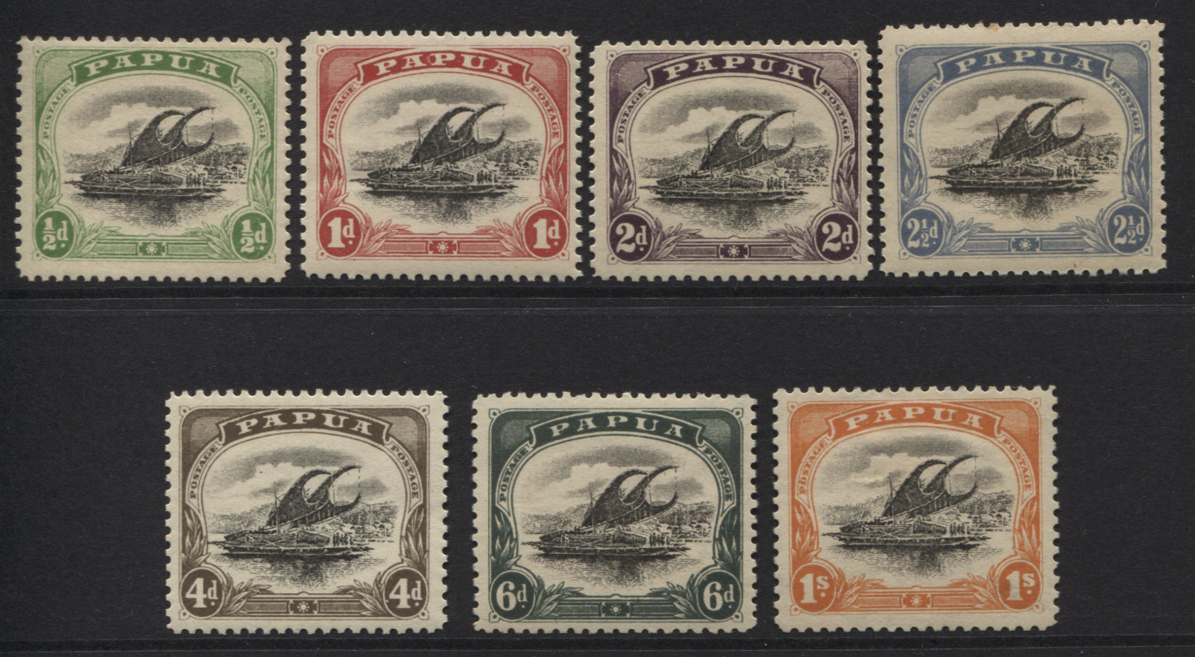 Small PAPUA set of 7, wmk sideways, perf 11. Fine,
