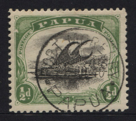 Small PAPUA, wmk sideways, perf 11. ½d DEEP GREEN and black. Very fine, used.