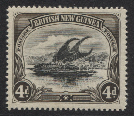 BNG 4d black and sepia, thick paper with wmk horizontal. Variety: DEFORMED ‘d’ at left. Superb, fresh mint unhinged. VERY SCARCE.