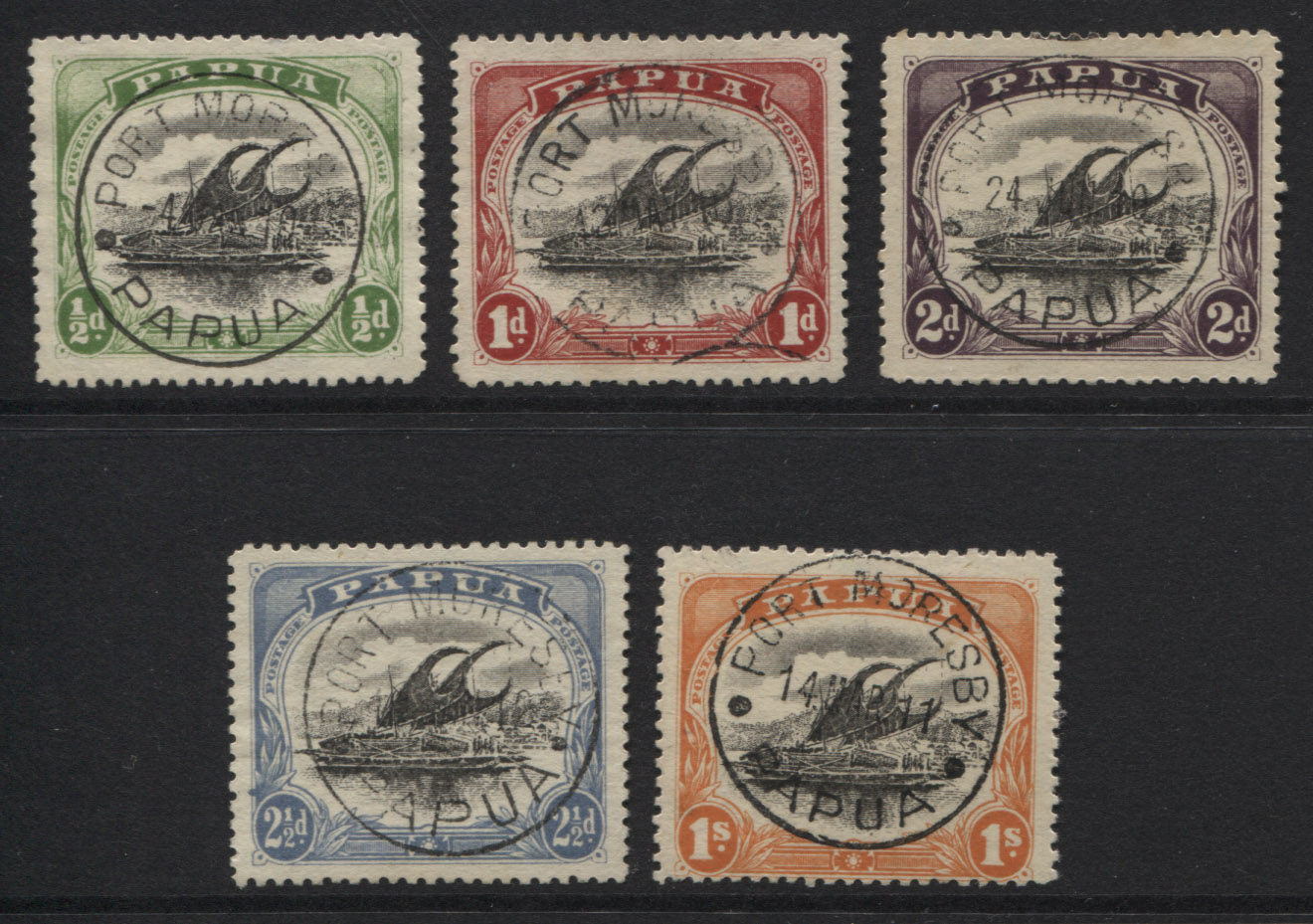 Small PAPUA, wmk sideways, perf 11, (ex 4d). Short set of 5. Very fine, used.