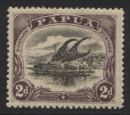 Large PAPUA, 2d black and purple with ‘C’ for ‘O’ in POSTAGE at right. Fine,