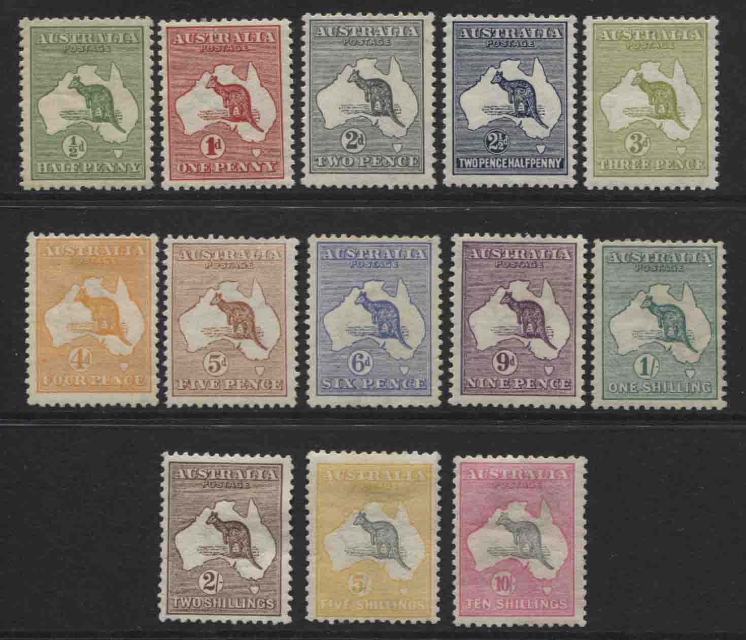 ½d – 10/- short set of 13 stamps, overall in fine condition. MINT HINGED. SAVE. A difficult assembly.