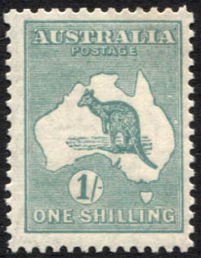 3rd wmk., 1/- green, die 2B. Variety: "1" FOR 1st "I" OF SHILLING. Mint light...$175.00 -