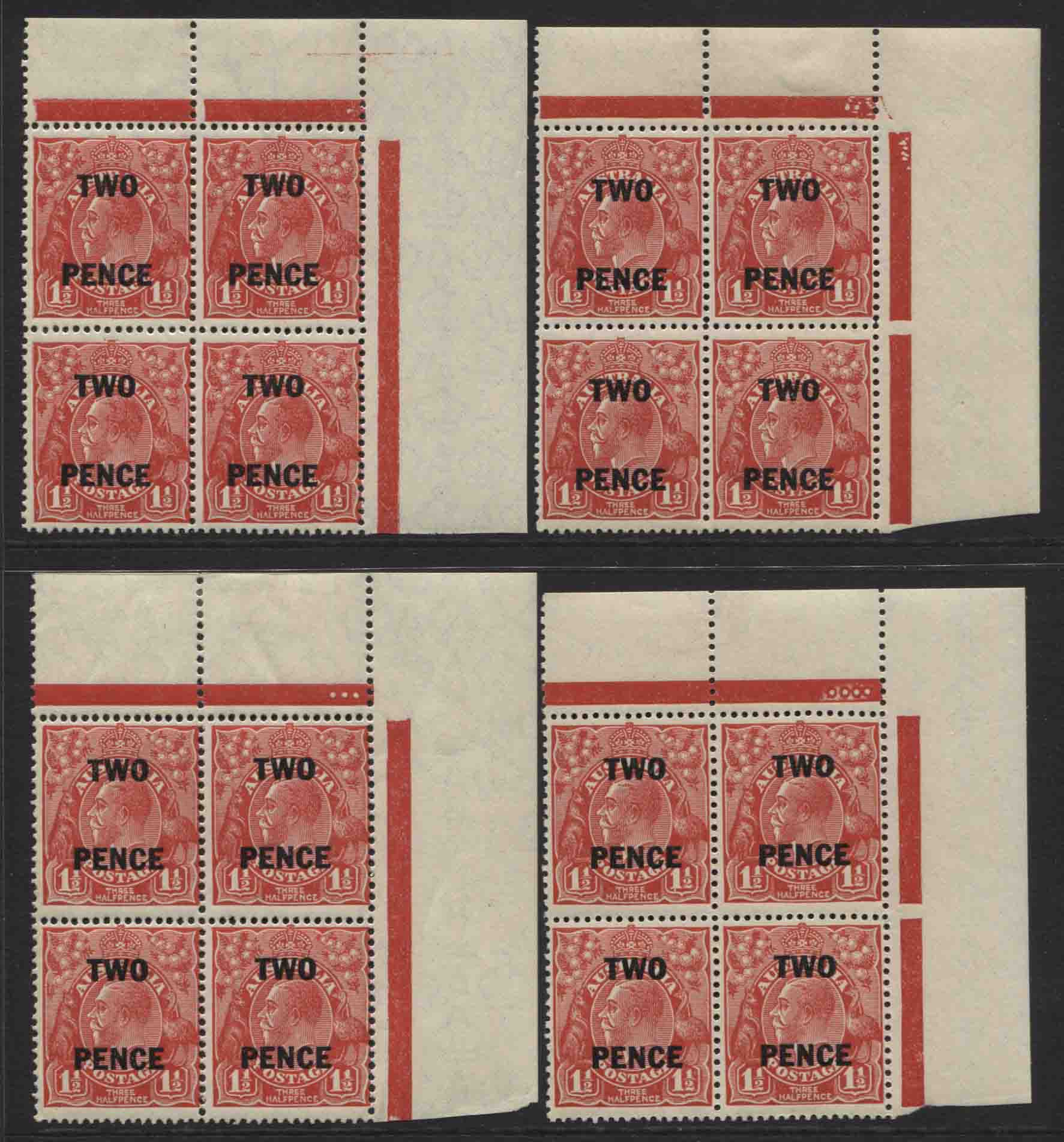 Small multiple wmk, p13½ x 12½. Set of 4 PLATE DOT (1-4) corner blocks of 4. All stamps are fresh and mint unhinged.