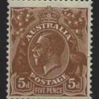 KGV C of A Wmk 5d orange brown. Variety: MISSING FRAME BEHIND EMU, rare. DRURY Certificate. Mint lightly...