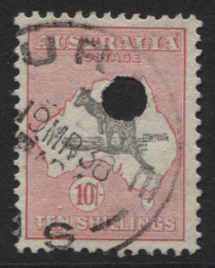 10/- grey and pink, with TELEGRAPH PUNCTURE. Very fine.