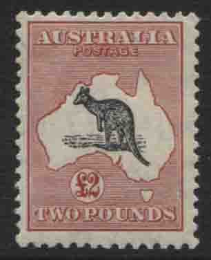 10/- grey and pink with vignette plate variety: MUZZLED ROO. Very fine, mint lightly hinged.$950.00 -