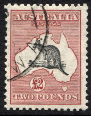 £2 black & crimson. Duty plate variety WHITE FLAW IN BIGHT plus unlisted combination of...$4,850.00 -