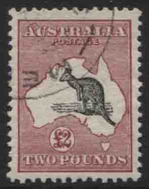 £2 black and red. Cancelled to order “MELBOURNE 25 APRIL, 13”. A jumbo stamp. Extra fine.