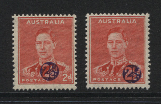 1941 2½d on 2d scarlet surcharge. Surcharge misplaced at least 3mm to left. A scarce variety. Mint lightly hinged.