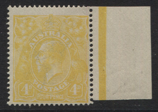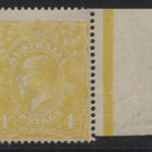 Single wmk, 4d LIME-YELLOW with variety LINE THROUGH ‘FOUR PENCE’. DRURY Certificate. A great rarity. Extra fine, mint unhinged.