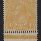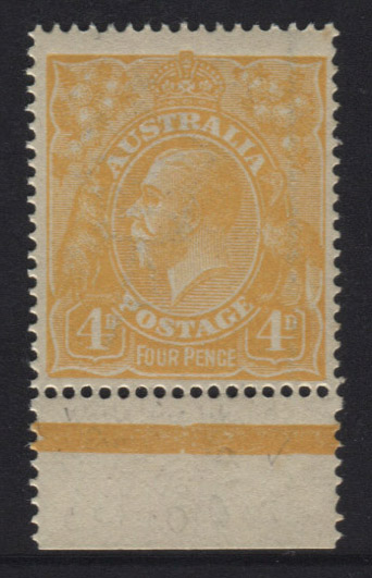 Single wmk, 4d pale yellow-orange. Variety: WHITE FLAW BEHIND EMU’S LEG (1R60). Mint unhinged.