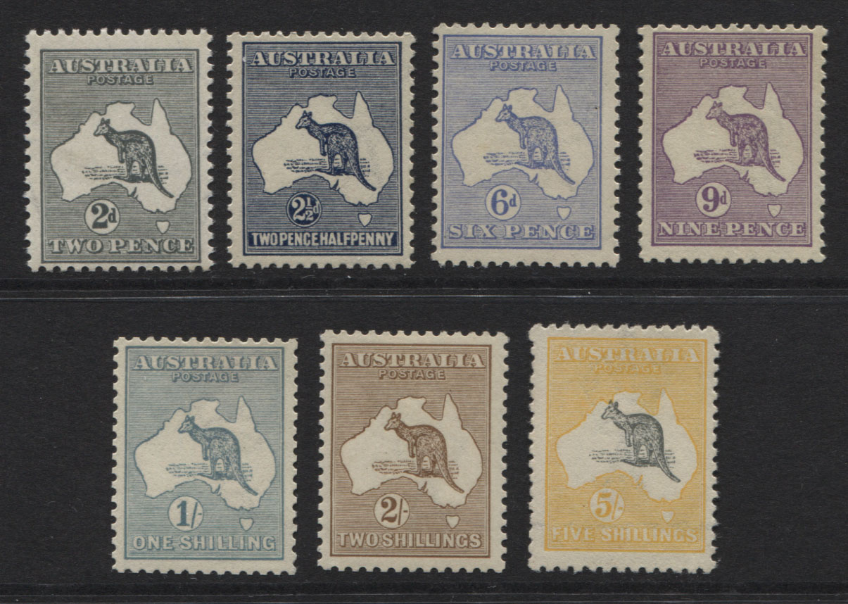 A complete set of 7 stamps in fresh, mint unhinged condition. They key values (2/-, 5/-) are exceptionally fine.