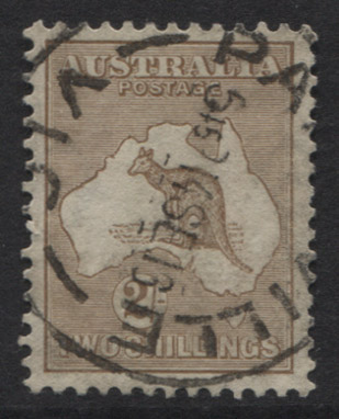 2/- light brown. VERY THIN PAPER variation. A fine used, clearly dated example.