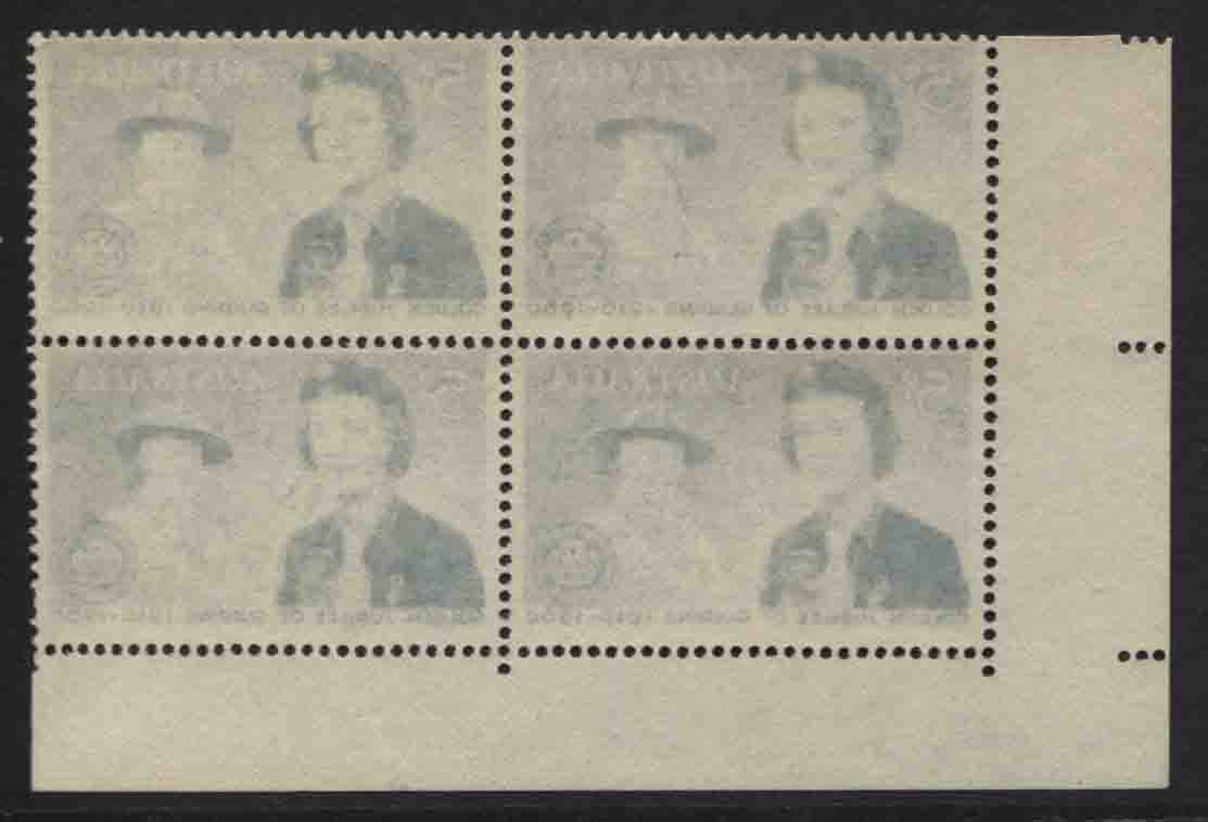 5d Girl Guide corner block of 4, with OFFSET on reverse (ACSC $900). Extra fine, mint unhinged.