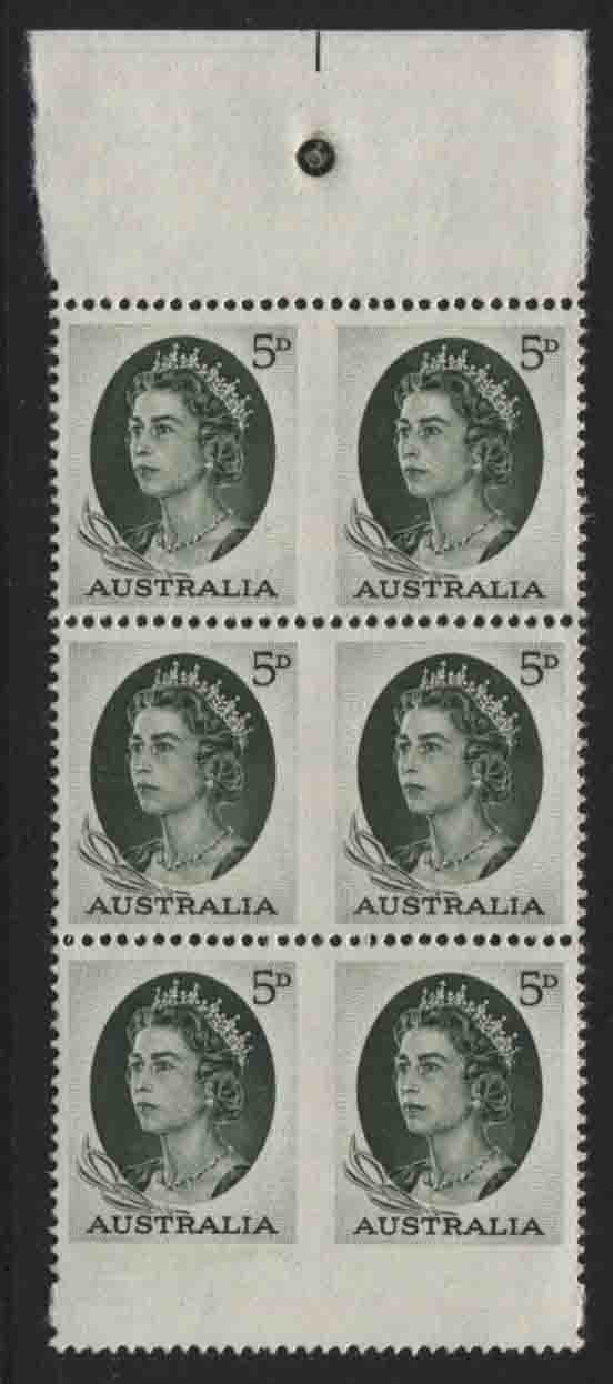 QEII 5d green, imperforate between. PLATE No 1 (WITHOUT DASHES) in upper selvedge. SCARCE. Mint unhinged.