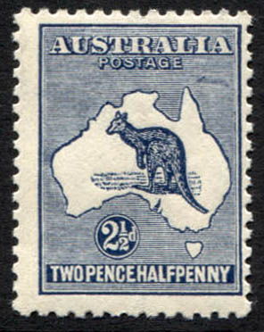 3rd Wmk, 2½d deep blue. Variety: Colour spot over U of AUSTRALIA, STATE II, (retouch under “IA”). Mint unhinged.