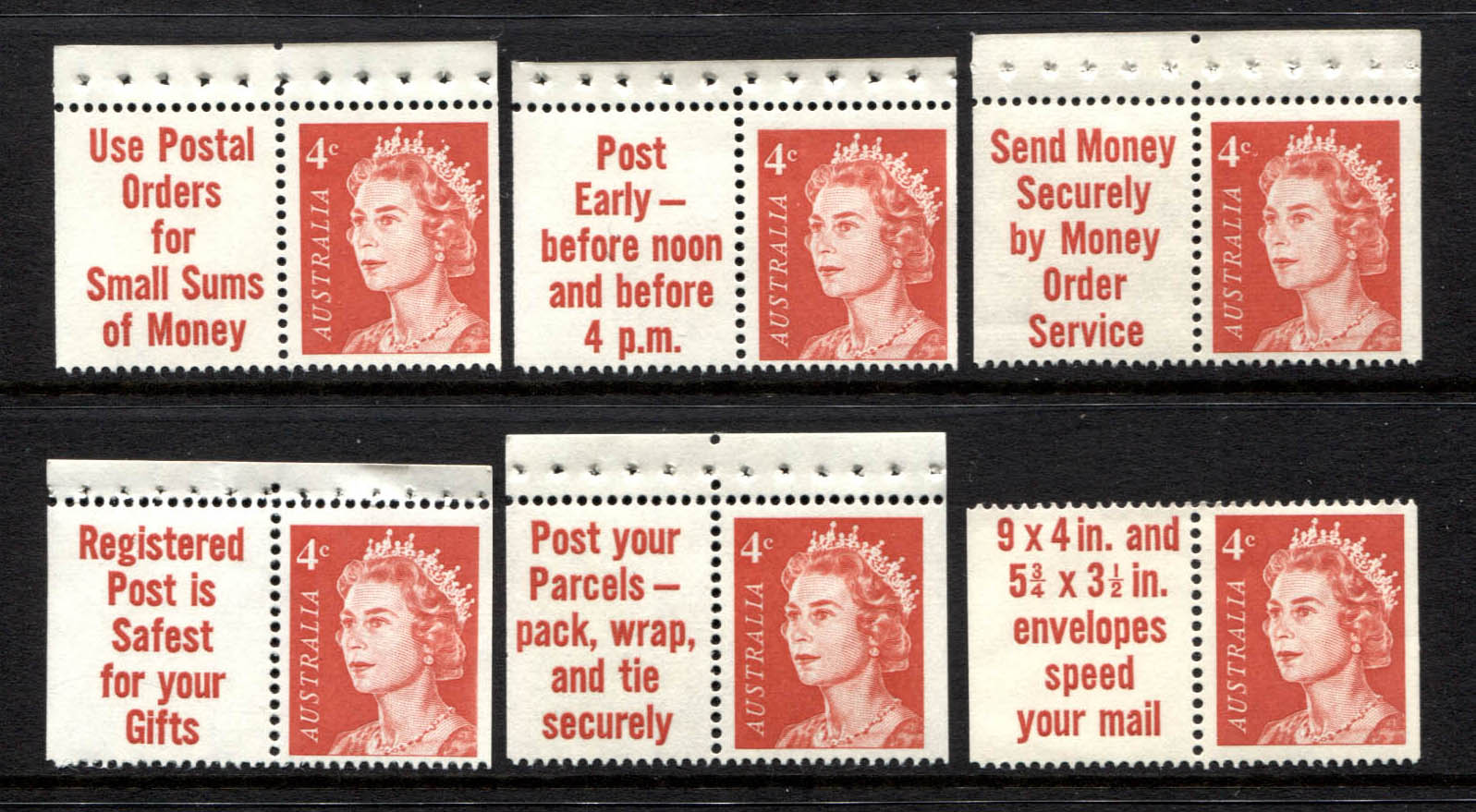 Set of 6 different booklet pane TABS. Very fine, mint unhinged.