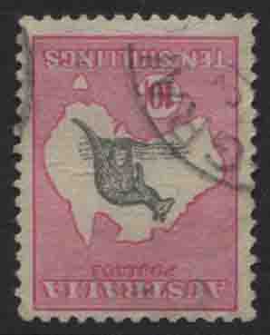 10/- grey and aniline pink. WMK INVERTED. SCARCE. Fine used.