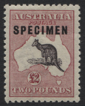 £2 purple-black and rose SPECIMEN overprint, type C. Mint unhinged.
