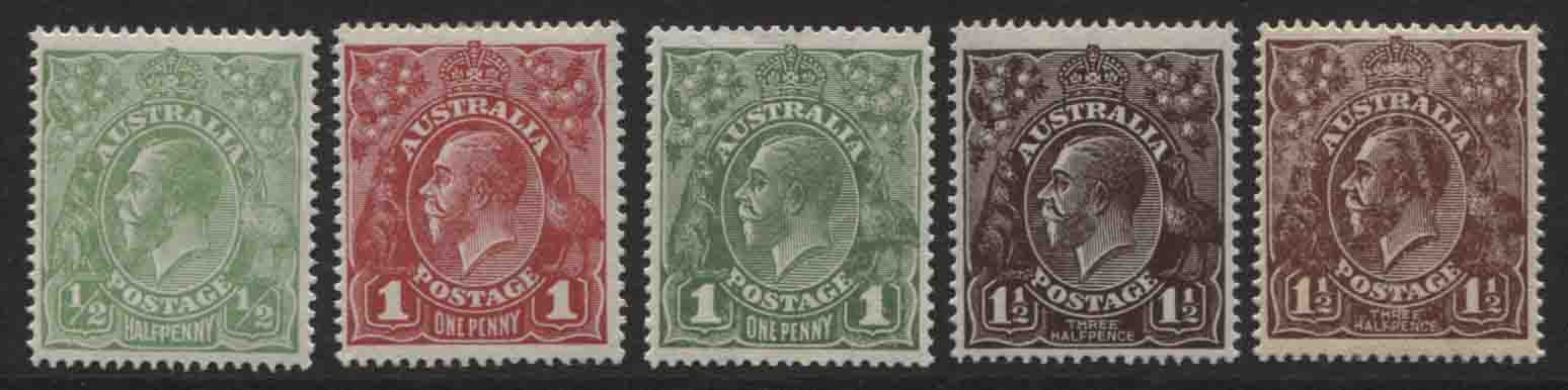 Large multiple wmk. Simplified set of 5. Extra fine, mint unhinged.