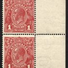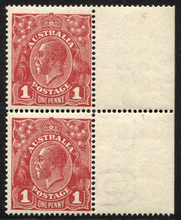 Single wmk 1d CARMINE-RED, DIE 3. A vertical pair with the upper stamp with plate variety: THINNED ‘US’ FIRST STATE….Also note WHITE SPOT behind King’s Head, a constant