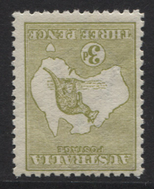 3d yellow-olive, die 1, wmk INVERTED. Very fine,