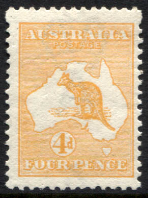 10/- grey-pink. Variety: BROKEN COAST NEAR SYDNEY & WHITE FLAW AFTER "I" OF AUSTRALIA. Fine...$850.00 -