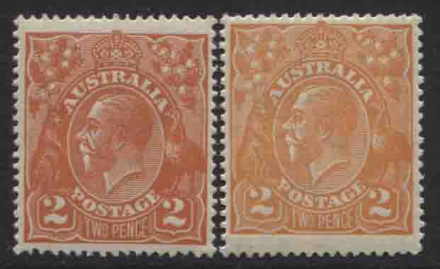 Single wmk, 2d brown-orange and orange shades (2 stamps). Extra fine,