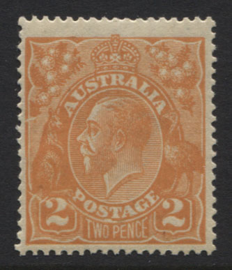 Single wmk, 2d orange. CRACKED ELECTRO AT BASE OF LEFT WATTLE, plus further CRACK AT BASE (State II). Very scarce. Mint lightly hinged.