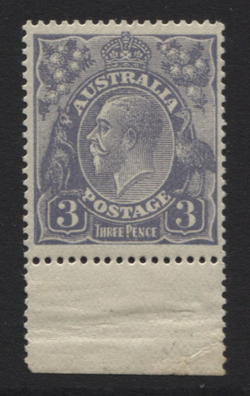 Single wmk, 3d violet-blue COARSE MESH PAPER and OFFSET combination. DRURY Certificate. Mint unhinged.
