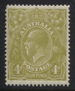 Small Multiple wmk, p 14. 4d olive. Extra fine. Very scarce so well centred. Mint unhinged.