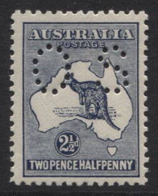 5/- grey/pale yellow perforated OS, "misplaced Kangaroo into bight", fine commercially used example.$1,750.00 -