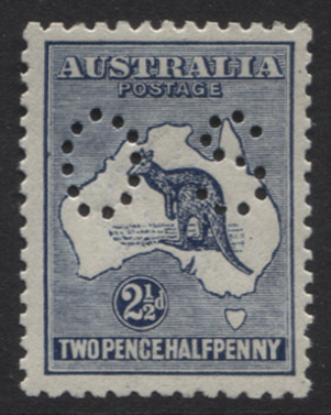 5/- grey/pale yellow perforated OS, "misplaced Kangaroo into bight", fine commercially used example.$1,750.00 -