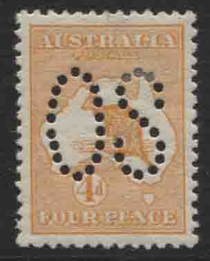 4d orange/yellow, rare shade perforated large OS, fine used.