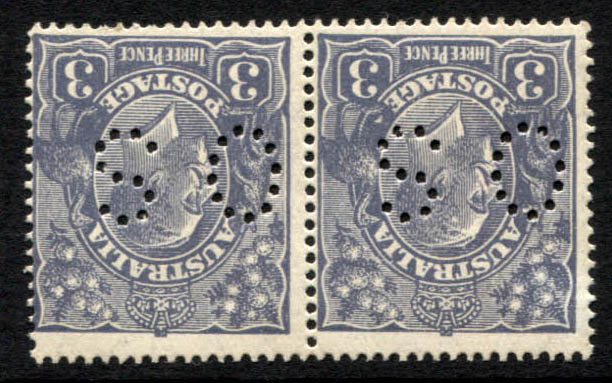Small Multiple wmk, p14. 3d blue ‘OS’ wmk INVERTED. Type A,B horizontal pair. Type B is mint unhinged, type A mint very lightly hinged.