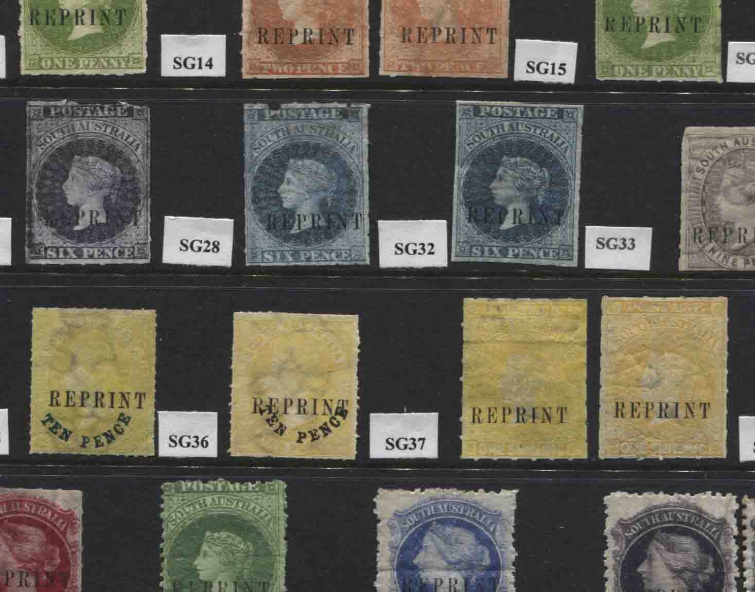 A selection of more than 40 different, listed by SG number. Includes the very scarce SG 4 1/- violet REPRINT. Overall in fine condition. Seldom offered as such a large group.