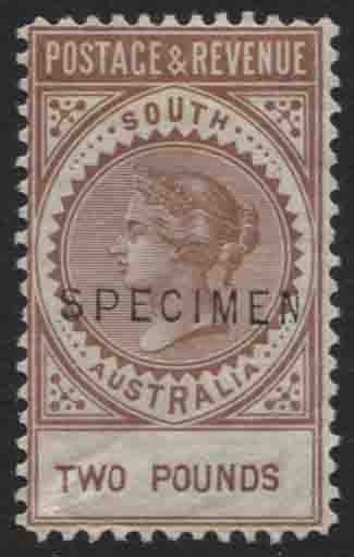 POSTAGE & REVENUE. £2 Venetian red, perf 10. SPECIMEN OVERPRINT (1st type), 18.5mm x 2.5mm. RARE. Mint lightly hinged.