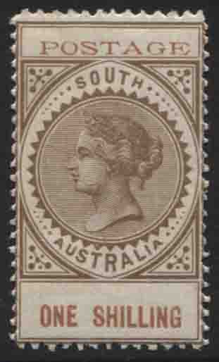 LONG TYPE, ‘ONE SHILLING’, thin POSTAGE in brown-red. Mint examples are very scarce. Very fine, mint lightly hinged.
